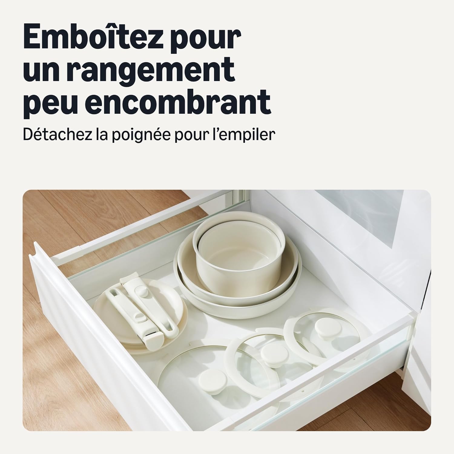 Chaque élément est empilable, facile à ranger et conçu pour une utilisation quotidienne sur tous types de plaques : gaz, induction, vitrocéramique et électrique.